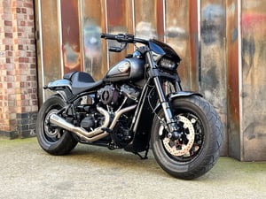 This Stunning Fat Bob is be beautifully painted in a stunning Blue, with the addition for the fairing, tall bars and raw exhaust, this has been Customised for Performance!