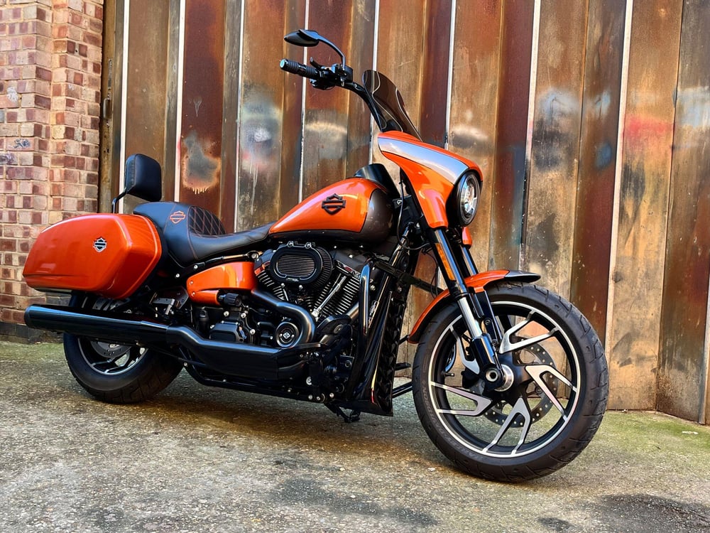 Stunning Sport Glide at Sycamore Harley-Davidson in Uppingham, wrapped from new in this orange and silver makes the Softail stand out.